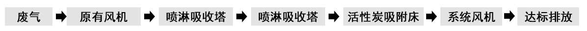 根據客戶需求和我司實地考察之后,最終采用‘兩級噴淋吸收法+活性炭吸附法’對其進行處理。采用水噴淋一方面可以降溫,另一位方面能夠讓水吸一部分的有機廢氣,降低后續活性炭吸附的負荷。